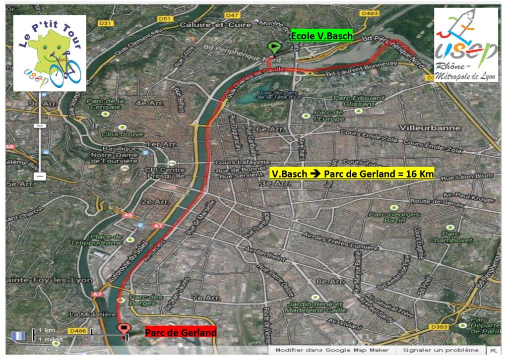 Les classes participantes devront réaliser un parcours de 16km reliant l’école Victor Basch de Calluire et Cuire au Parc de Gerland. Le déplacement à vélo s’effectue le matin ou l’après-midi pour 4 classes à la fois sur les berges aménagées du fleuve.